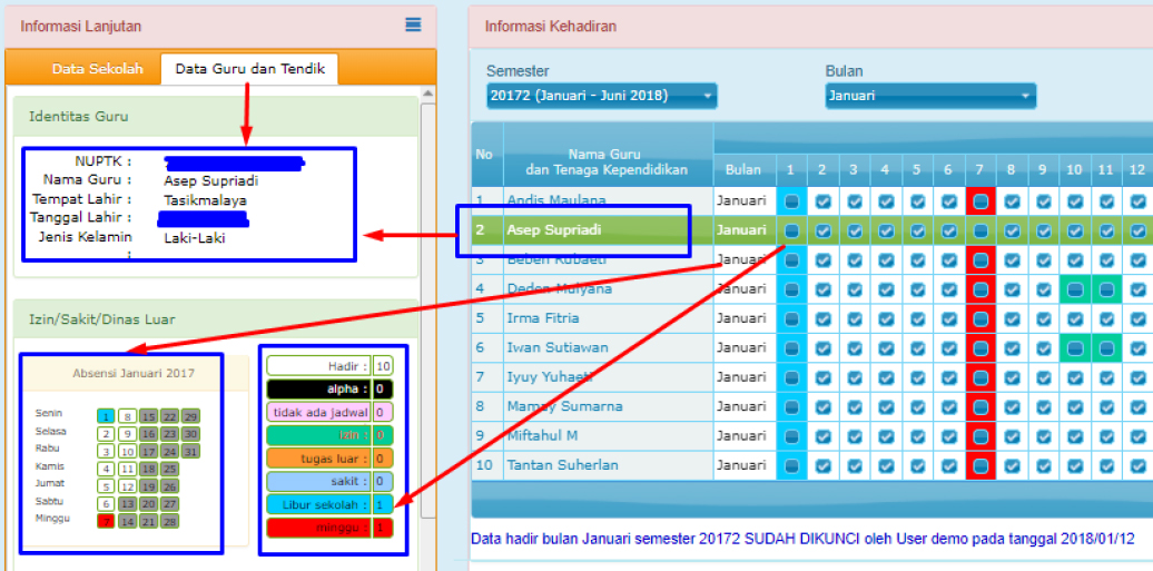Memilih bulan yang berjalan itu sangat penting alasannya ialah untuk menentukan bulan yang berjalan, dan sanggup di isi Data Hadirnya dan tersimpan. Karena kalau bulan yang dipilih bukan bulan yang berjalan maka hasil pengsiannya tidak tersimpan. Jika menentukan bulanJanuari maka akan tampil menyerupai di bawah ini :